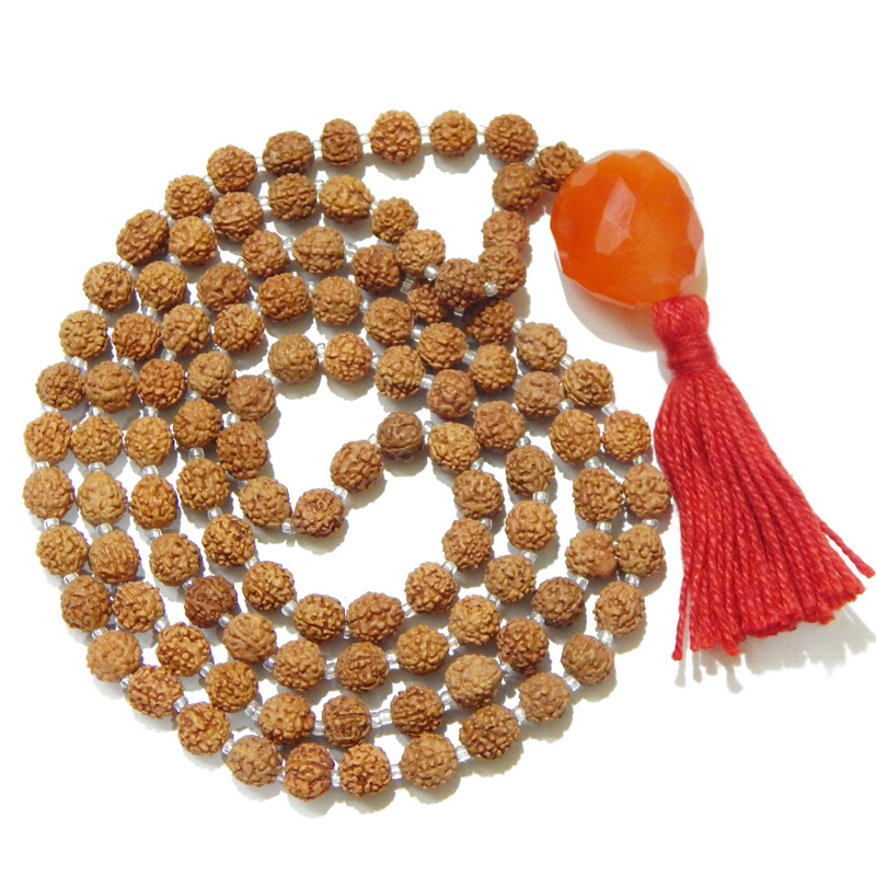 Rudraksha Mala with Carnelian Pendant