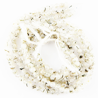 The Rutilated Quartz 5mm Round Gemstone Beads string consists of approximately 75 beads on a 14.5-inch string, offering a beautiful and distinctive element for your craftwork.